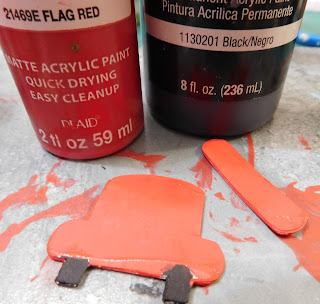 Once the glue dries paint the top of the box with a red paint and allow to dry. I also painted the bottom piece with white to cover up the pencil lines.